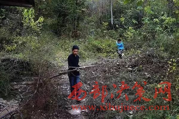 今年春節(jié)過(guò)后,張榮海就跟著村里人去了吉林長(zhǎng)春打工,東北零下幾十度,凍得他實(shí)在受不了,每天跟著師傅學(xué)刮膩?zhàn)?,活很累,他力氣又小,加上粉塵太大,只干了五六個(gè)月,又跑到河北張家口去了,前后打工半年多,工錢(qián)都讓師傅領(lǐng)走了,只帶回家1600多塊。本打算多干幾個(gè)月,可弟弟要上學(xué),平時(shí)吃住在繼父家,弟弟不愿待在“別人”家,所以他就跑回來(lái)照顧弟弟。進(jìn)入冬季,山里人離不開(kāi)火爐。這天弟弟放學(xué)回來(lái),哥倆一起上山砍柴,為過(guò)冬做準(zhǔn)備。