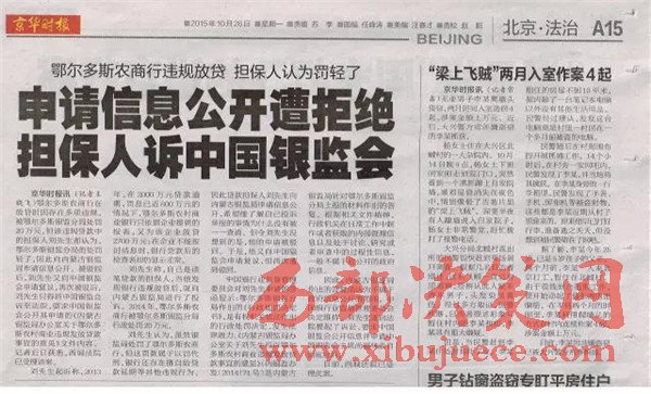 2、在內(nèi)蒙古自治區(qū)紀(jì)委監(jiān)督之下內(nèi)蒙古銀監(jiān)局查出鄂爾多斯農(nóng)商銀行發(fā)放的2000萬、2700萬、2900萬三筆貸款屬于違規(guī)貸款;