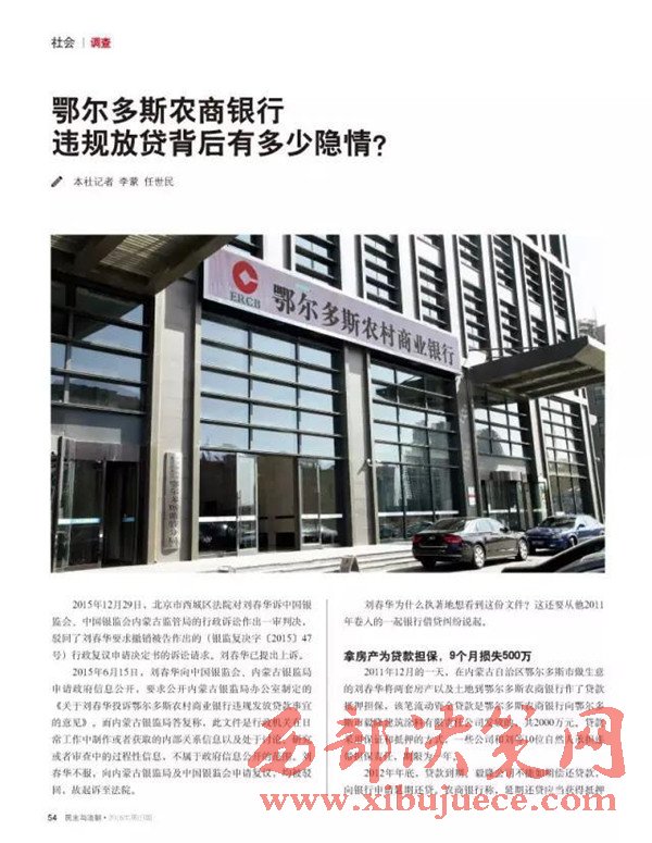 維權(quán)中劉春華又向內(nèi)蒙古自治區(qū)紀(jì)委進行了實名舉報,鄂爾多斯農(nóng)商銀行多次違法發(fā)放貸款一案內(nèi)蒙古自治區(qū)紀(jì)委高度重視。經(jīng)內(nèi)蒙古自治區(qū)紀(jì)委監(jiān)督內(nèi)蒙古銀監(jiān)局對鄂爾多斯農(nóng)村商業(yè)銀行違規(guī)放貸事實進行了核查、再查等環(huán)節(jié)之后確定劉春華舉報違法放貸2000萬、2700萬、2900萬屬實。
