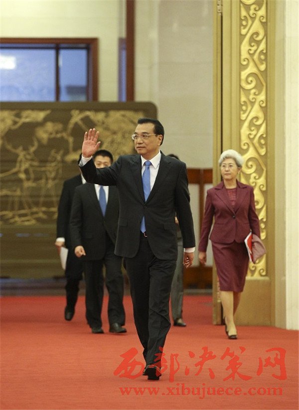 李克強步入人民大會堂三樓金色大廳會見中外記者