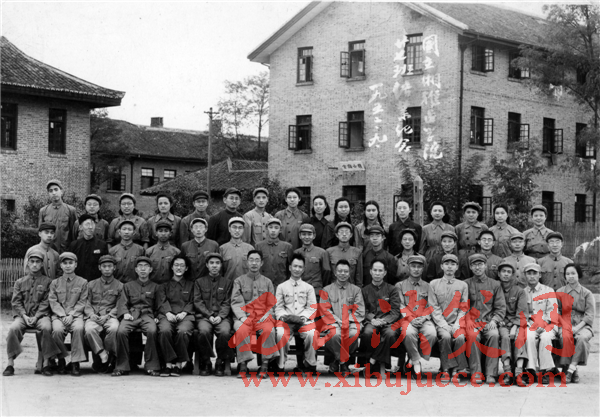 前排正中著淺色服裝的政委的左手側(cè)是凌敏猷校長(zhǎng),鞠躬站在他后面