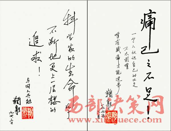 鞠躬院士在自己自傳中寫道:我對(duì)自己的評(píng)論是無(wú)偉業(yè),點(diǎn)燃一支燭光而已??部部揽酪簧F(xiàn)在蠟炬已幾乎成灰了。愿我國(guó)早日成為培養(yǎng)諾貝爾獲得者的土壤,愿我們世世代代青出于藍(lán)勝于藍(lán)。