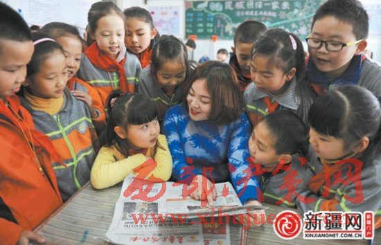 3月17日,在市第73小學(xué)三(6)班,班主任楊蓉和同學(xué)們一起學(xué)習(xí)習(xí)近平總書記在參加十二屆全國人大五次會議新疆代表團(tuán)審議時(shí)的重要講話精神。
