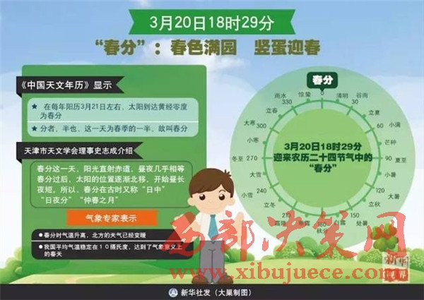 “二氣莫交爭(zhēng),春分雨處行。”3月20日18時(shí)29分我們將迎來(lái)農(nóng)歷二十四節(jié)氣中的“春分”,春分這一天,陽(yáng)光直射赤道,晝夜幾乎相等。春分過(guò)后,太陽(yáng)的位置逐漸北移,開(kāi)始晝長(zhǎng)夜短。