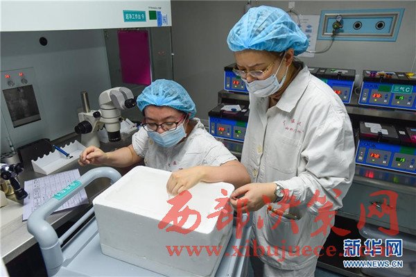 3月20日,廣醫(yī)三院胚胎實(shí)驗(yàn)室人員杜紅姿(右)和陳仕萍核對(duì)從冷凍庫(kù)里提取的胚胎。
