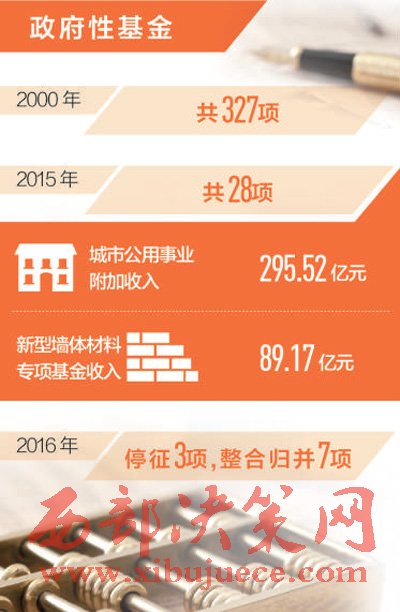 經(jīng)過幾輪清理規(guī)范后,到2015年,政府性基金已從2000年的327項減少到28項。2016年,國家進一步清理收費基金,停征價格調(diào)節(jié)基金等3項政府性基金,整合歸并散裝水泥專項資金等7項政府性基金。特別是針對小微企業(yè),加大了降費力度。