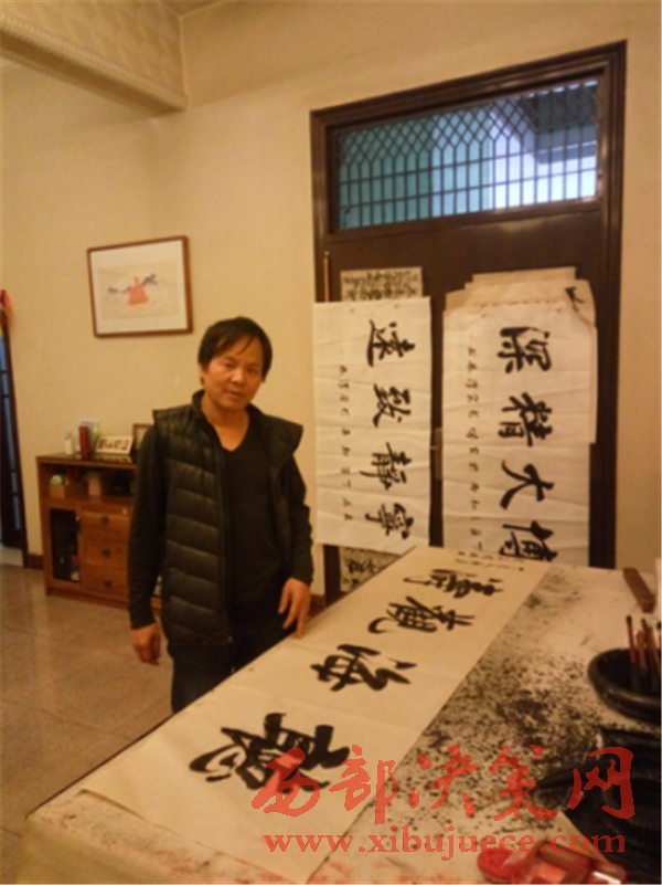 于是在今年的3月18日,經(jīng)過(guò)多次聯(lián)系我終于踏上尋訪神交已久的故人,初次看到他映入我的眼簾的是中等的身材蓄著長(zhǎng)發(fā)三七分,方形臉,一個(gè)典型的關(guān)中漢子的形象。就是這樣一個(gè)默默無(wú)聞平凡無(wú)奇的人,當(dāng)他進(jìn)入蕓蕓眾生之中,尋找起來(lái)是那樣的不容易。