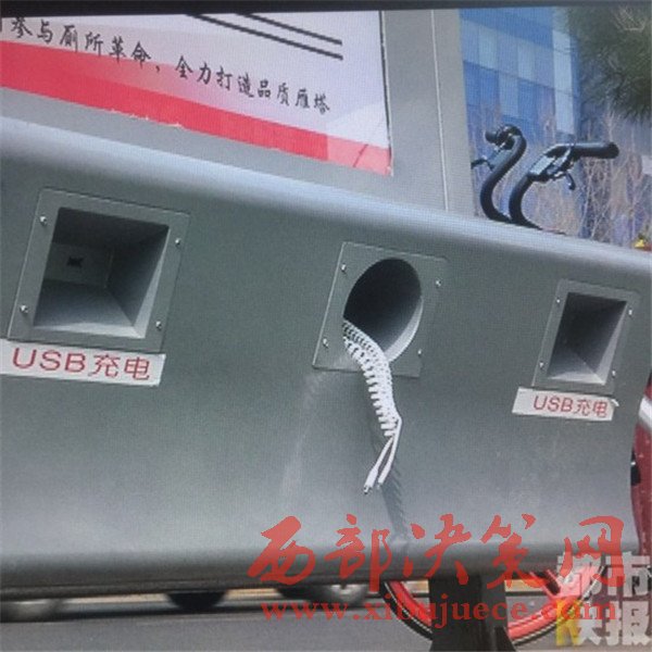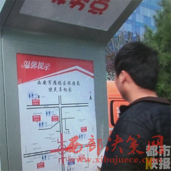 西安小寨街頭出現(xiàn)便民導(dǎo)廁神器,還能給手機充電。
