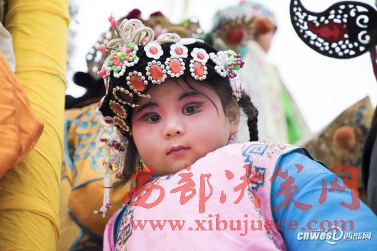 兩個(gè)小孩正在進(jìn)行社火表演。