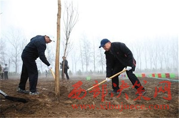 書(shū)記部長(zhǎng)共同種樹(shù)苗