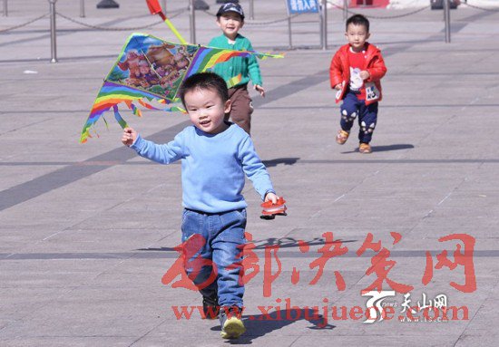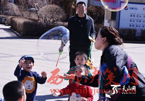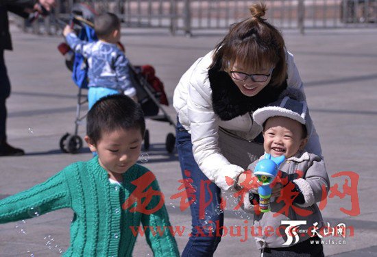 3月29日,烏魯木齊市天氣晴朗,天空一片湛藍,很多市民都走出家門享受春天的陽光,不少孩子在人民廣場上追逐、奔跑、吹泡泡、放風箏,玩得不亦樂乎。當日,烏魯木齊市最高氣溫達到14攝氏度,市民已經脫下了厚厚的棉衣,穿上了春裝。