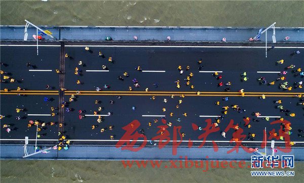 當(dāng)日,2017武漢馬拉松在雨中鳴槍開跑。武漢馬拉松因穿越漢江、長江、東湖,橫跨包括武漢長江大橋在內(nèi)的多座橋梁而備受馬拉松愛好者追捧。