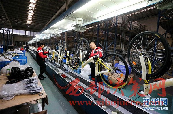 4月10日,在天津市武清區(qū)南蔡村鎮(zhèn)一家自行車生產(chǎn)企業(yè),工人在包裝共享單車車架。該企業(yè)日均下線共享單車約1500輛,目前正擴(kuò)充生產(chǎn)線,開足馬力生產(chǎn)共享單車。隨著共享單車走紅大江南北,國(guó)內(nèi)傳統(tǒng)自行車制造業(yè)迎來新的機(jī)遇。共享單車投放量的快速增加,給自行車行業(yè)注入一針強(qiáng)心劑,多地自行車企業(yè)著手調(diào)整思路、升級(jí)產(chǎn)能,為下一步發(fā)展做準(zhǔn)備。