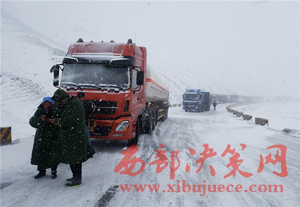 記者從甘肅省阿克塞哈薩克族自治縣獲悉,受冷空氣影響,國道215線當(dāng)金山路段普降大雪,截至4月10日8時,降雪仍在繼續(xù),部分路段積雪厚度達(dá)20多厘米,有250余輛大型車輛滯留當(dāng)金山路段。
