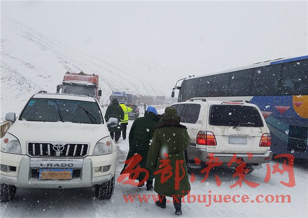 原標(biāo)題:國道215線當(dāng)金山路段因大雪道路結(jié)冰200多車輛被困