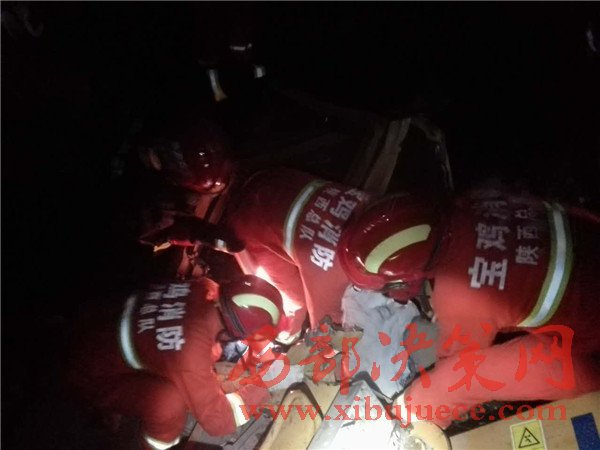 西部決策網(wǎng)-西部大開發(fā)訊(帥華鋒 杜杰 通訊員 史璐峣))4月25日19:09分,寶雞市拓石鎮(zhèn)仙龍村一輛裝載機(jī)側(cè)翻山崖,兩名駕駛?cè)藛T被困。渭濱公安消防大隊(duì)巨福路中隊(duì)接指揮中心接警后立即出動(dòng)兩輛水罐消防車官兵12人趕赴現(xiàn)場(chǎng)。途中與報(bào)警人聯(lián)系被困人員位于20米深的山崖里,已無(wú)生命體征。