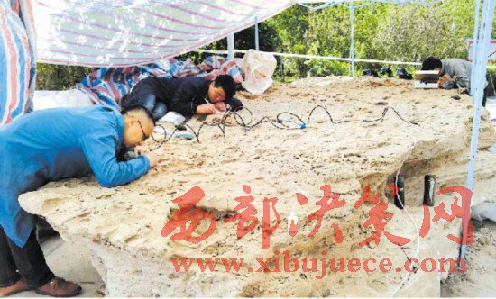 哈密科考隊(duì)隊(duì)員周紅嬌介紹,從2006年起,科考隊(duì)在哈密魔鬼城一帶搜尋早白堊紀(jì)翼龍以及其它恐龍化石,2016年10月,科考隊(duì)在魔鬼城發(fā)現(xiàn)了這個(gè)化石界的“大塊頭”。當(dāng)時(shí)我們是在一處坍塌的雅丹地貌上發(fā)現(xiàn)的,已被風(fēng)化得很嚴(yán)重,如不及時(shí)保護(hù),很可能會(huì)受到更大損害。在與哈密博物館協(xié)商后,于當(dāng)年11月16日,將其運(yùn)送到哈密博物館,今年4月份開始修復(fù)。”周紅嬌說(shuō),修復(fù)時(shí),先使用機(jī)械設(shè)備清理化石周圍的圍巖,因?yàn)轱L(fēng)化比較嚴(yán)重,表層比較脆弱,因此修復(fù)時(shí)要十分小心,最后用氣吹和手捻手動(dòng)清理。清理完畢后,會(huì)噴涂一層保護(hù)膠,用來(lái)保護(hù)化石。