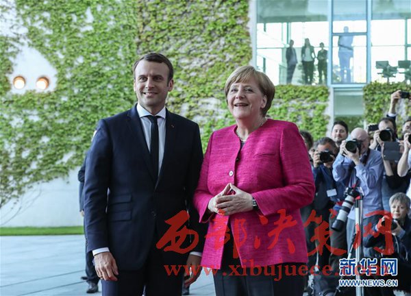 馬克龍14日就任法國總統(tǒng),次日便啟程直奔德國首都柏林、開啟海外首訪。在與德國總理默克爾會談時,馬克龍表示要加強法德兩國關(guān)系,并呼吁“歷史性地重建”歐盟。