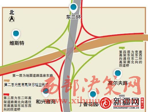 5月22日起,烏魯木齊克南高架東延二期工程圍蔽施工。其中工程將建一座全互通的立交,屆時(shí)將與東二環(huán)高架形成五層交互式立交。