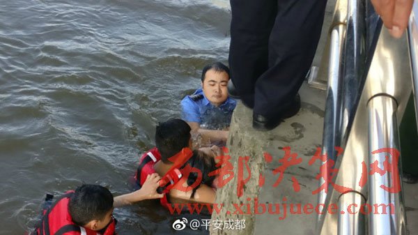 據(jù)成都市公安局官方微博“平安成都”消息,6月10日,成都簡陽一女子因感情糾紛跳入沱江輕生,簡陽民警王林和同事接警后趕到現(xiàn)場。王林來不及穿救生衣便跳入水中,將女子往岸邊拉。不料女子不斷掙扎拒絕施救,救援難度加大,王林只能盡力將其托起避免其溺水,5分鐘后消防官兵趕到聯(lián)合將女子救起。王林累癱在地,“幸好消防及時趕到”。