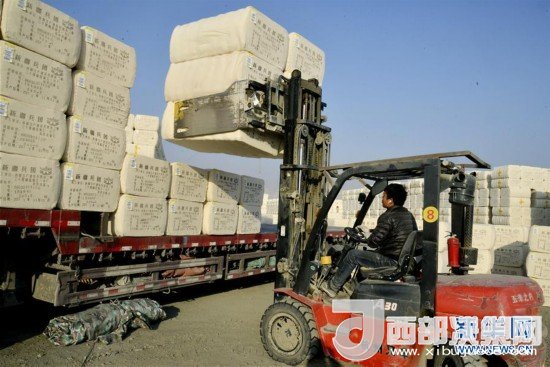 11月30日,工作人員將皮棉裝車準(zhǔn)備外運(yùn)。新華社發(fā)(杜炳勛 攝)