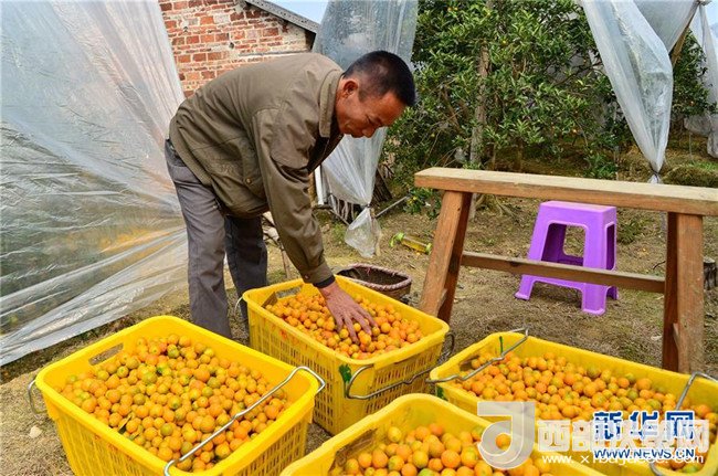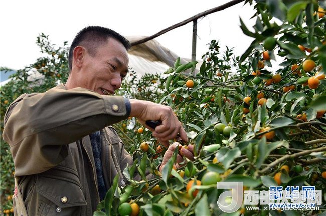 近年來,廣西融安縣因地制宜,把金桔列為扶貧增收的重要產(chǎn)業(yè),通過農(nóng)業(yè)獎(jiǎng)補(bǔ)政策、專業(yè)種植技術(shù)培訓(xùn)等鼓勵(lì)貧困戶種植金桔,助力脫貧。融安縣大將鎮(zhèn)雅仕村的貧困戶漆昭賢,曾常年在外地打工,生活條件艱苦。2014年在縣里政策引導(dǎo)下,他返鄉(xiāng)種植金桔,并獲得專項(xiàng)補(bǔ)貼和無息貸款,連續(xù)三年參加縣農(nóng)業(yè)局等單位舉辦的種植技術(shù)培訓(xùn)班。如今,漆昭賢不僅在自己的地里種金桔,還承包了周圍農(nóng)戶的土地,種植面積十余畝,今年預(yù)計(jì)產(chǎn)量可達(dá)16000斤,純收入有望達(dá)到4萬元。記者李絢麗攝