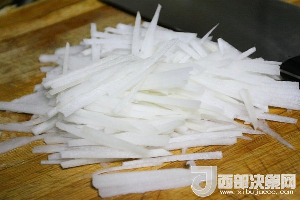9、白蘿卜洗凈切絲。