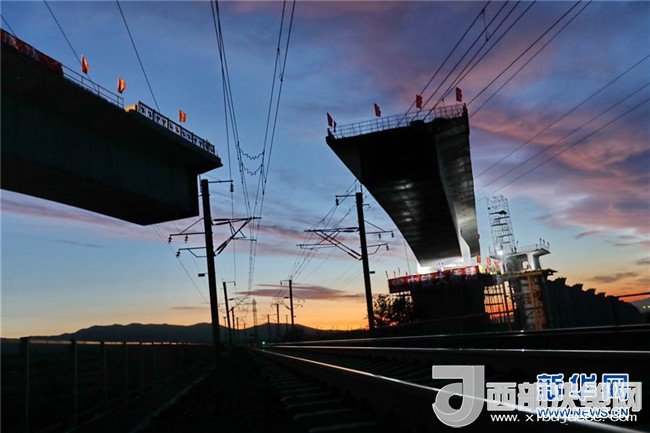 河北省懷來(lái)縣境內(nèi)的新建京張高鐵跨大秦鐵路線(xiàn)土木特大橋連續(xù)梁在轉(zhuǎn)體中(9月17日攝)。