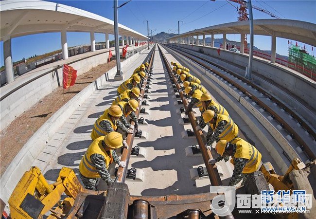 中鐵十九局工程人員在京沈高鐵凌源南站進(jìn)行鋪軌作業(yè)(9月28日攝)。京沈高鐵起自北京星火站,經(jīng)河北省承德市、遼寧省朝陽(yáng)市、阜新市接入沈陽(yáng)站,線(xiàn)路全長(zhǎng)698公里,設(shè)計(jì)時(shí)速350公里。