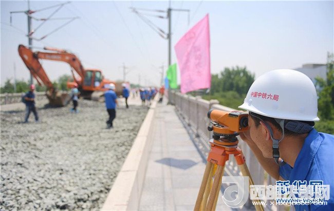 石濟(jì)客專(zhuān)引入石家莊樞紐工程的建設(shè)人員在進(jìn)行測(cè)量作業(yè)(6月15日攝)。這一工程預(yù)計(jì)今年12月底全線(xiàn)通車(chē),建成后石家莊至濟(jì)南乘坐高鐵只需90分鐘左右。