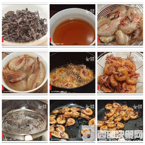 【食材】烏龍茶10g、海蝦500g、椒鹽粉適量、食用油適量。