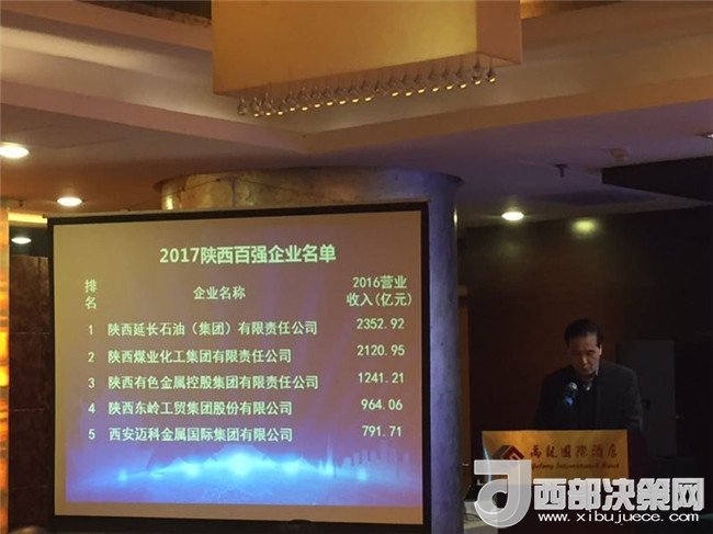 “2017陜西百強企業(yè)”評定是按照國際通行的方式,參照中國500強企業(yè)排序方法,堅持公平公正公開等原則,依據(jù)企業(yè)2016年度營業(yè)收入,在企業(yè)自愿申報為主的基礎上進行排序,并經(jīng)“陜西省百強企業(yè)審定委員會”審定后產(chǎn)生。