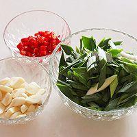 7. 將青蒜苗放進鍋中,大火煸炒勻均。