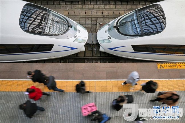 這是12月27日拍攝的停靠在天津動車客車段動車運用所的“復興號”列車。從鐵路部門了解到,全國鐵路將于12月28日起實施新的列車運行圖。 新華社發(fā)(楊寶森 攝)