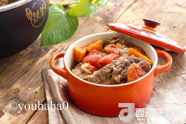 食材:牛腩500克,西紅柿800克,洋蔥一個(gè),胡蘿卜一個(gè),紅酒100克,鹽8克,植物油2湯匙。