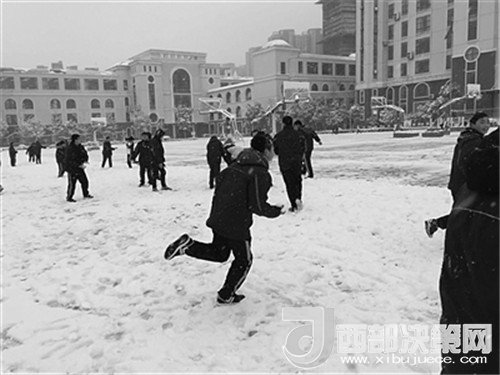 來到白雪覆蓋的操場,同學(xué)們有的三三兩兩牽引著,滑起了雪;有的互相追逐著,打起了雪仗;有的趁別人路過樹下,使壞地?fù)u動(dòng)著樹干;有的把雪團(tuán)搓成小雪條,乘人不備,塞進(jìn)別人的領(lǐng)口……沒人介意,更沒人生氣,有的只是一陣陣歡聲笑語,孩子們?cè)诼祜w舞的雪花中盡情釋放青春的激情。(通訊員 周峰 記者 朱鼎兆)