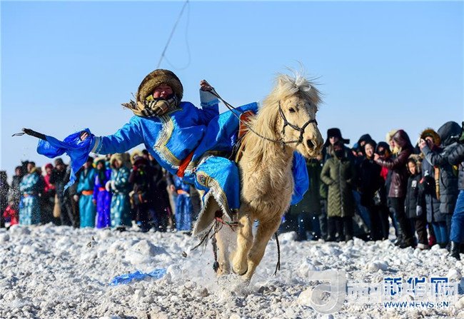 1月16日,在內(nèi)蒙古錫林浩特鳳凰馬場(chǎng),當(dāng)?shù)啬撩癖硌萏遵R。