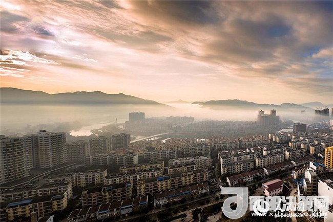 1月18日電1月18日,廣西上思縣城出現(xiàn)了平流霧奇觀,在朝陽渲染下的金黃色霧氣在低空緩緩地流動,樓房在霧氣中若隱若現(xiàn),宛若仙境。