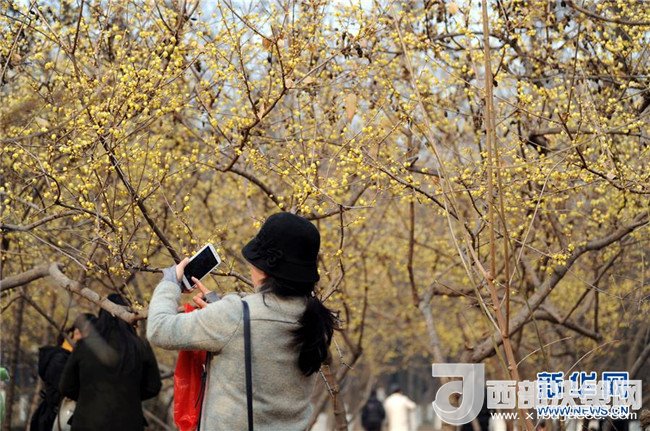 近日,西安市興慶公園內的臘梅凌寒開放,吸引眾多游客前來賞花。張博文攝