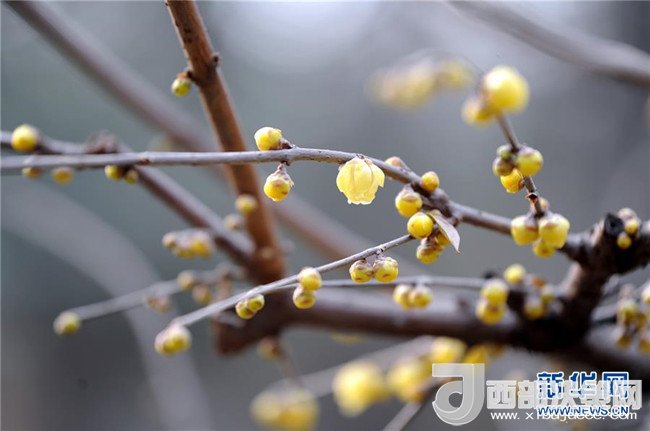 1月21日在西安市興慶公園內拍攝的臘梅。