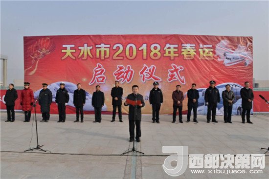 西部決策網(wǎng)-西部大開發(fā)訊(帥華鋒 通訊員 馬存福 王世強(qiáng))2月1日上午10時(shí),天水市2018年春運(yùn)啟動(dòng)儀式在天水南站舉行,為期40天的春運(yùn)工作正式拉開帷幕。市政府副市長(zhǎng)郝文杰參加啟動(dòng)儀式并宣布天水市2018年春運(yùn)工作正式啟動(dòng)。市政府黨組成員、市公安局局長(zhǎng)馬瑛主持啟動(dòng)儀式。