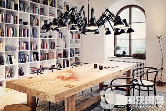 布滿(mǎn)整面墻的方格書(shū)架,不但空間充足而且便于分類(lèi)。房間中央是一張大工作臺(tái),工作、讀書(shū)都可兼顧,頗有幾分家庭圖書(shū)館的氣勢(shì)。