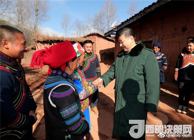 11日上午,習(xí)近平總書記驅(qū)車2個(gè)多小時(shí),從西昌市來到位于大涼山深處的昭覺縣三岔河鄉(xiāng)三河村、解放鄉(xiāng)火普村,走進(jìn)彝族貧困群眾家中,看實(shí)情、問冷暖、聽心聲,同當(dāng)?shù)馗刹咳罕姽采叹珳?zhǔn)脫貧之策。(“新華視點(diǎn)”微博報(bào)道 記者:霍小光,攝影:謝環(huán)馳)