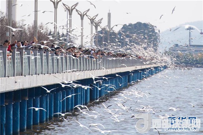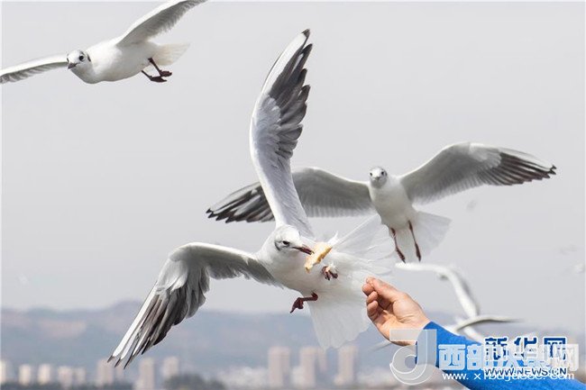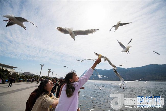 當(dāng)日,云南省昆明市陽(yáng)光明媚,眾多市民和游客來(lái)滇池海埂觀景大道觀賞、投喂紅嘴鷗。每年秋冬季大批紅嘴鷗飛臨昆明越冬。人鷗同樂(lè)成為昆明的一道風(fēng)景線。記者胡超攝