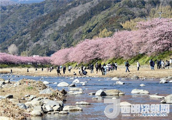 在太平洋沿岸的日本伊豆半島,河津櫻競(jìng)相綻放,吸引了眾多游客。記者馬平攝