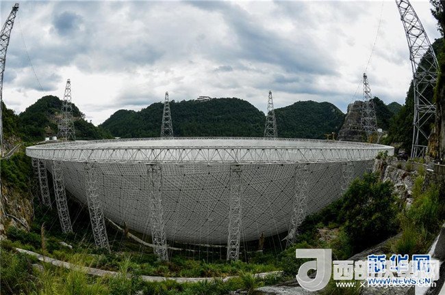 這是群山之中的500米口徑球面射電望遠鏡(FAST)全景(2017年8月9日攝)。