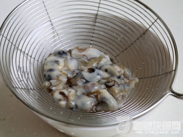 2.取一大碗將海蠣與50克紅薯粉和50克清水拌均。