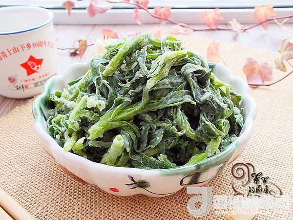 1.面條菜洗凈、控至不滴水,放入大盆中,淋入少許植物油抓勻,這樣可以防止粘連