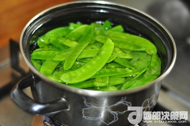 2.荷蘭豆去兩頭去筋洗凈 。