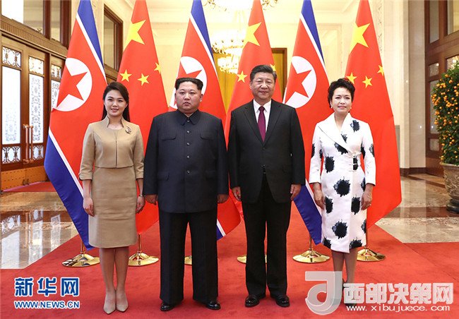 訪問期間,習近平在人民大會堂同金正恩舉行會談。習近平總書記和夫人彭麗媛為金正恩委員長和夫人李雪主舉行歡迎宴會并共同觀看文藝演出。